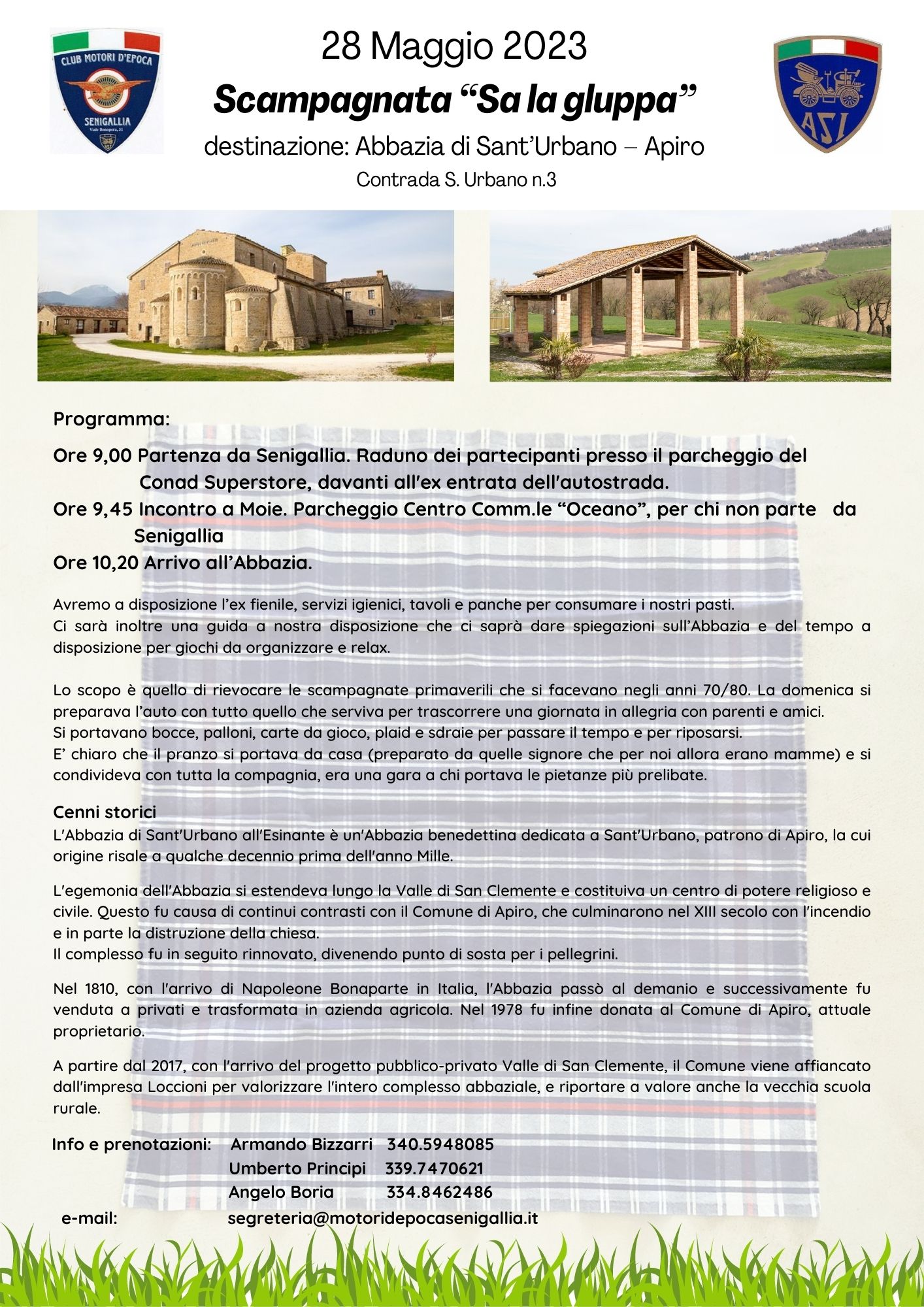 Il Club Motori d'Epoca Senigallia, l'Autoclub Storico Pesaro "Dorino Serafini" e il Club Auto Moto Storiche Ancona, vi aspettano per giorni lieti e per salutare insieme la Primavera.