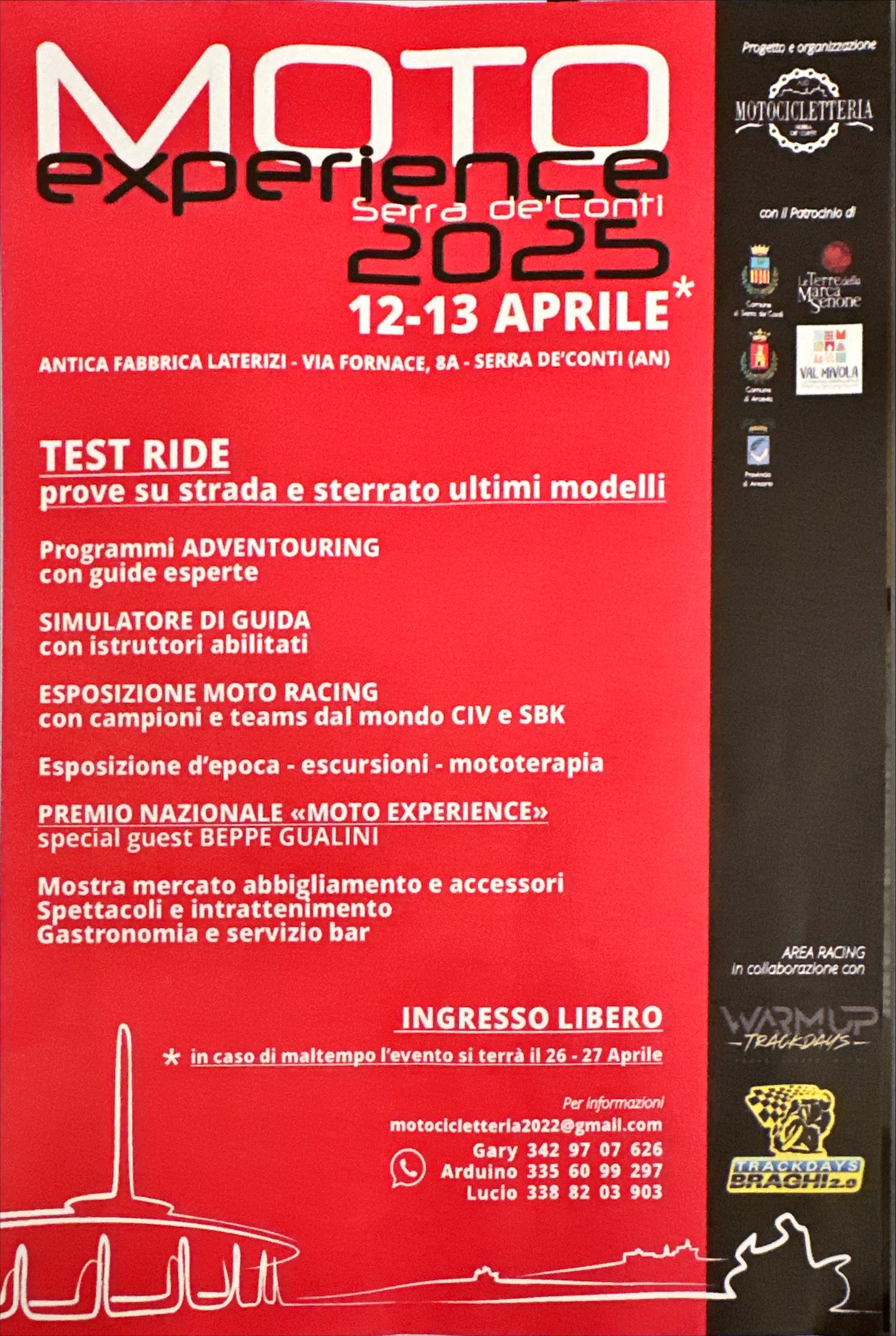 Ma vogliamo anche celebrare la nostra comune passione: i motori. E lo faremo visitando prima l’S.C. Garage dei F.lli Crescentini a Pesaro e a seguire il museo dedicato a Marco Simoncelli a Coriano.